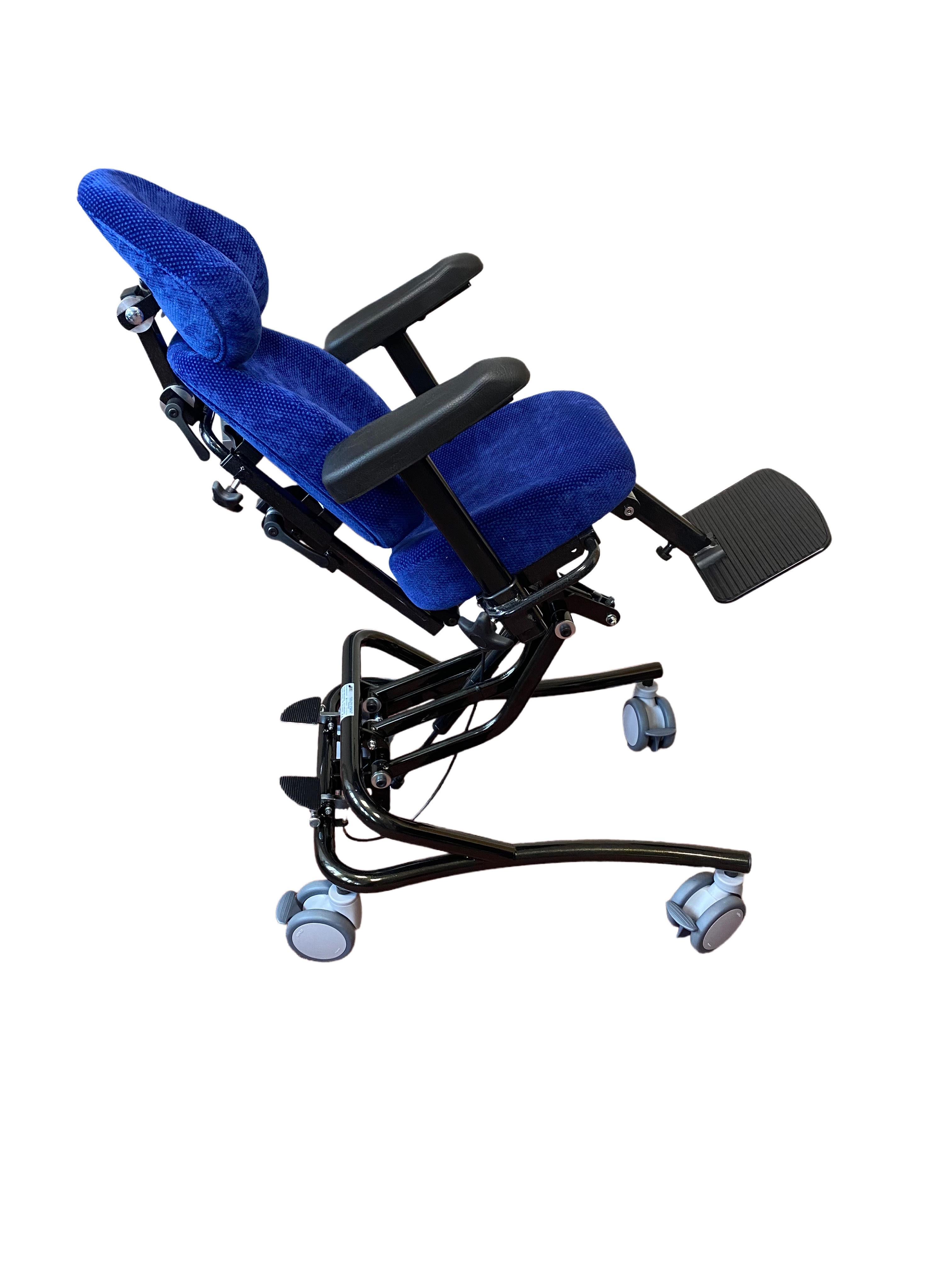 The EVI is an adapted high chair designed specifically for smaller children, allowing them to sit comfortably and securely closer to ground level. Ideal for home, school, or therapeutic environments, the EVI provides extra support, enabling children to sit independently for longer periods.